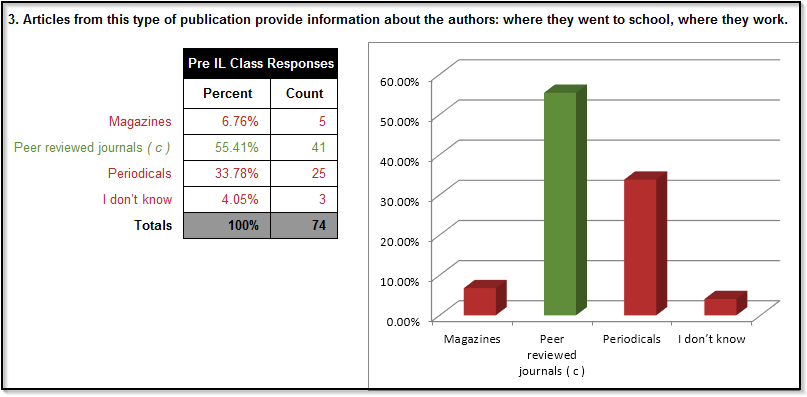 Although most ADN students recognized that magazines were not good sources of scholarly information for nursing research, scores improved after the IL class: